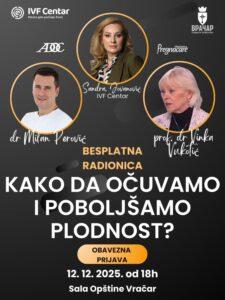 Градска општина Врачар, у сарадњи са IVF Центром и компанијом „ADOC Pharma“, организује бесплатну и едукативну радионицу посвећену очувању и унапређењу репродуктивног здравља. Радионица је