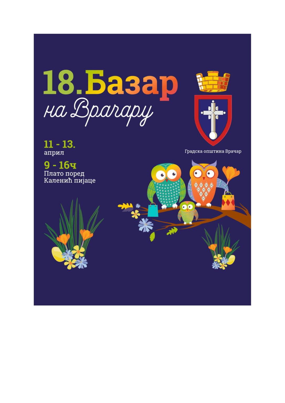 У сусрет ускршњим празницима дружимо се на 18. „Базару на Врачару“. На добро познатом месту – платоу поред Каленић пијаце, од петка 11. априла, до недеље до 13. априла заједно откривамо свет аутентичних производа – од домаћих специјалитета, природне козметике, па све до уникатних рукотворина.