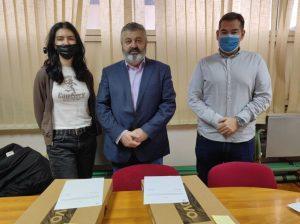 Члан Већа задужен за образовање Драги Лукић и помоћник председника Градске општине Врачар Коста Маловић разговарали су данас са некадашњим ученицама основних школа „Свети Сава“ и „Јован Миодраговић“ Аном Ивић и Ањом Вуловић, које су освојиле највећи број бодова на завршном испиту за упис у средњу школу у школској 2019/2020. и 2020/2021. години.