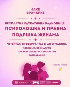 Gradska opština Vračar, u okviru projekta „Za jake Vračarke“, a u saradnji sa UK “ Božidarac“ poziva vas na besplatnu edukativnu radionicu posvećenu ličnom osnaživanju, podršci i informisanju žena