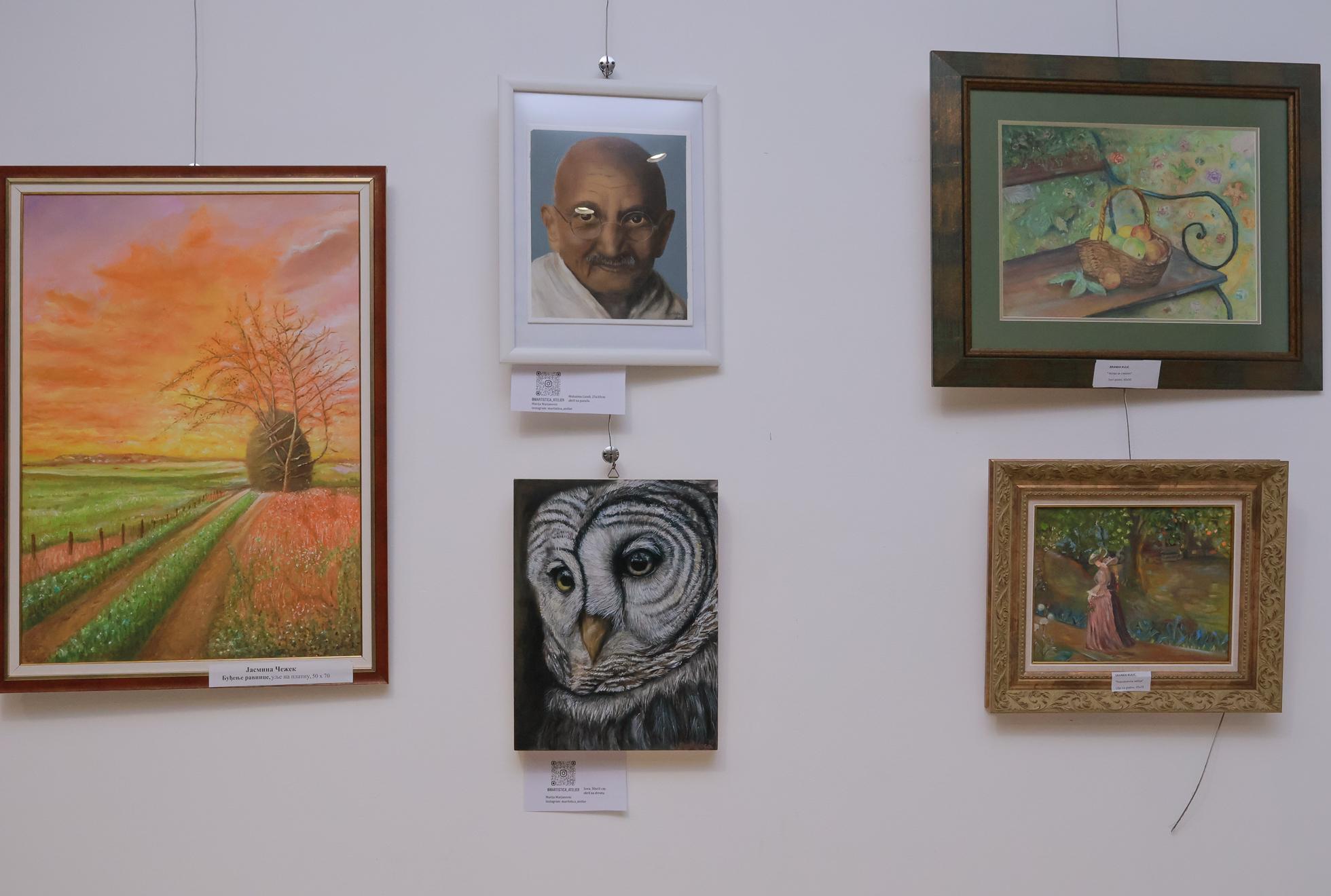 Публика је имала прилику да ужива у радовима рађеним у различитим техникама, од уљу на платну, акварелу, слици на свили… Разноврсност израза и тема донела је богатство визуелних доживљаја и потврдила да уметност нема границе када је покрећу искрена емоција и посвећеност.