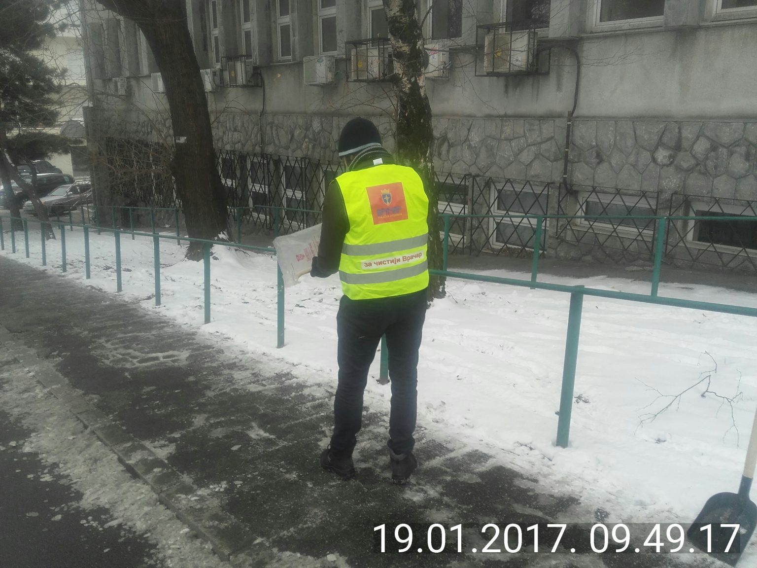 Štab za vanredne situacije GO Vračar ( tim za zaštitu i spašavanje od snežnih padavina) je dana 19.01.2017. godine ponovila akciju uklanjanja padavina (snega i leda) sa javnih površina, kako sa onih ulica koje su bile predviđene Operativnim planom čišćena snega za 2017. godinu (Braničevska, Bojanska, Jovana Rajića, Grčića Milenka, Sazonova, Đerdapska u blizini OŠ „Siniša Nikolajević“ …), tako i sa ulica koje nisu bile predviđene planom ( Mileševska, Timočka, Vilovskog, Kumanovska, Molerova, Knjeginje Zorke, Braće Nedića, Sinđelićeva, Alekse Nenadovbića… ) a sve u cilju izlaženja u susret molbama građana Vračara radi veće bezbednosti istih.