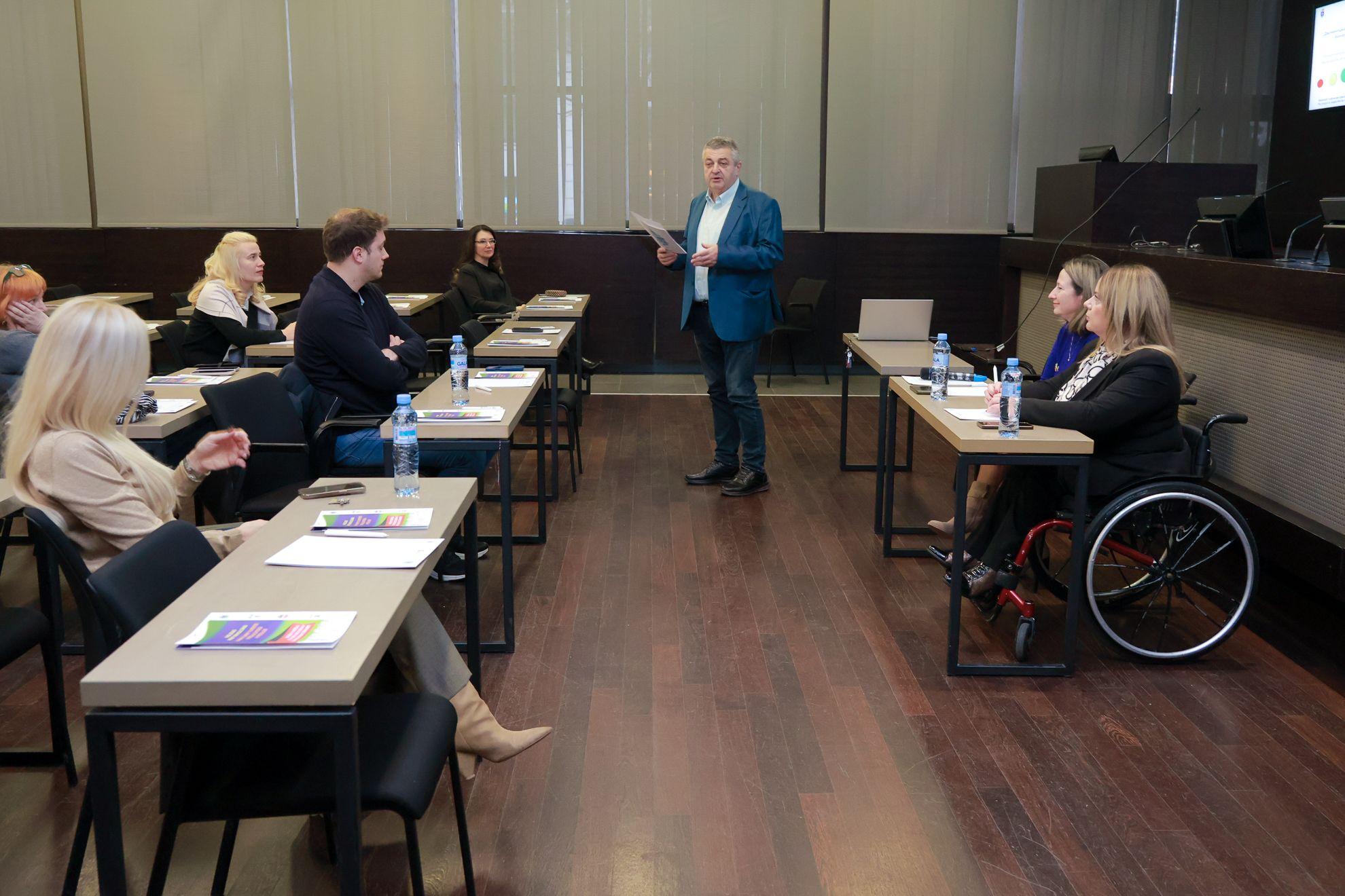 U prvom delu radionica, Irena Lakobrija Delić, šefica Odseka za projekte, govorila je o Univerzalnom dizajnu, njegovoj primeni u praksi, o važnosti pristupačnosti i njegovima oblicima, kao i o iskustvu sa studijskih putovanja u Boros i savetniku za pristupačnost grada Borosa.
