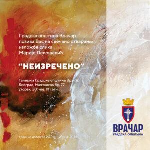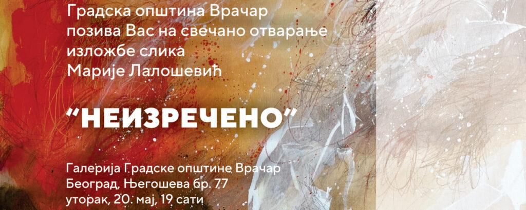 У галерији Градске општине Врачар, у уторак 20. маја 2025. године у 19 часова, биће отворена друга самостална изложба „Неизречено“, ауторке др Мaрије Лалошевић, архитекте.