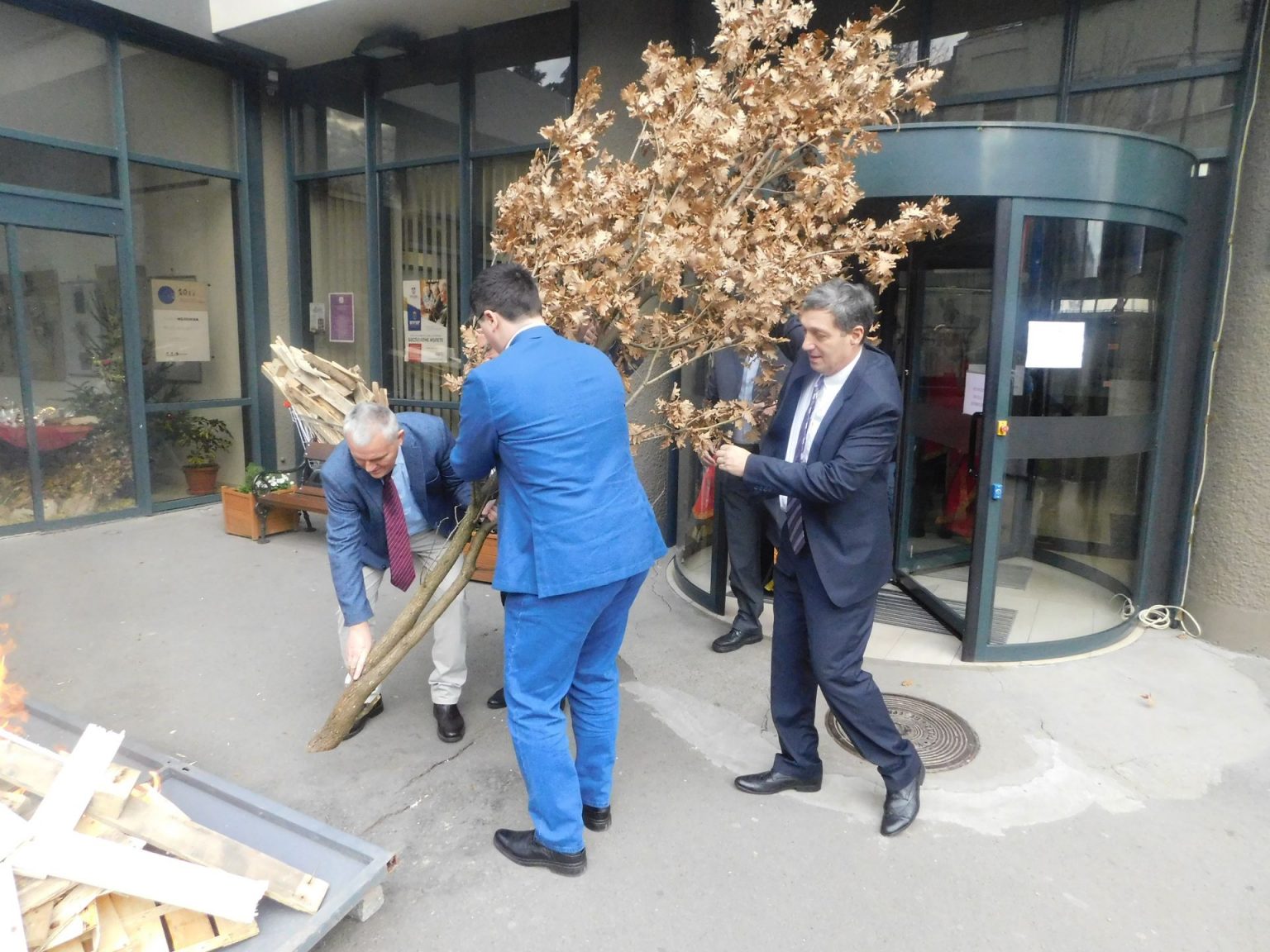 Бадњак су наложили председник општине Недељковић, члан Већа Рајко Митић, председник одборничке групе „Александар Вучић-Србија побеђује“ др Угљеша Мрдић и запослени у општини Врачар, а обред је служио Високопреподобни Архимандрит, отац Стефан Шарић, настојатељ Храма Светог Саве.