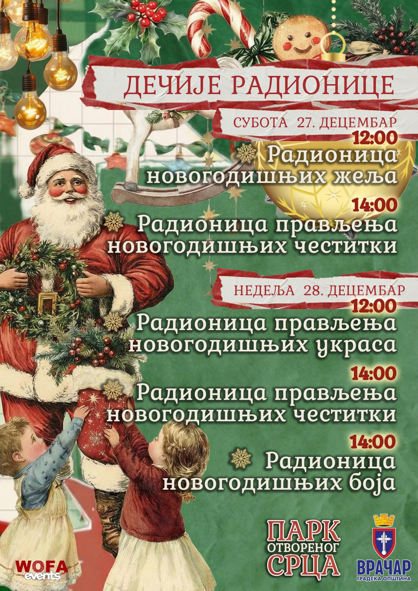 Током оба дана, посетиоце очекује новогодишњи базар, постављен током читавог дана, са празничним декорацијама, рукотворинама и оригиналним поклонима. Најмлађе очекује богат и разноврстан програм: новогодишња дечија представа сваког дана у 11 часова, креативне радионице, као и омиљене атракције попут јахања понија и сликања са Деда Мразом, које ће употпунити празнични доживљај.