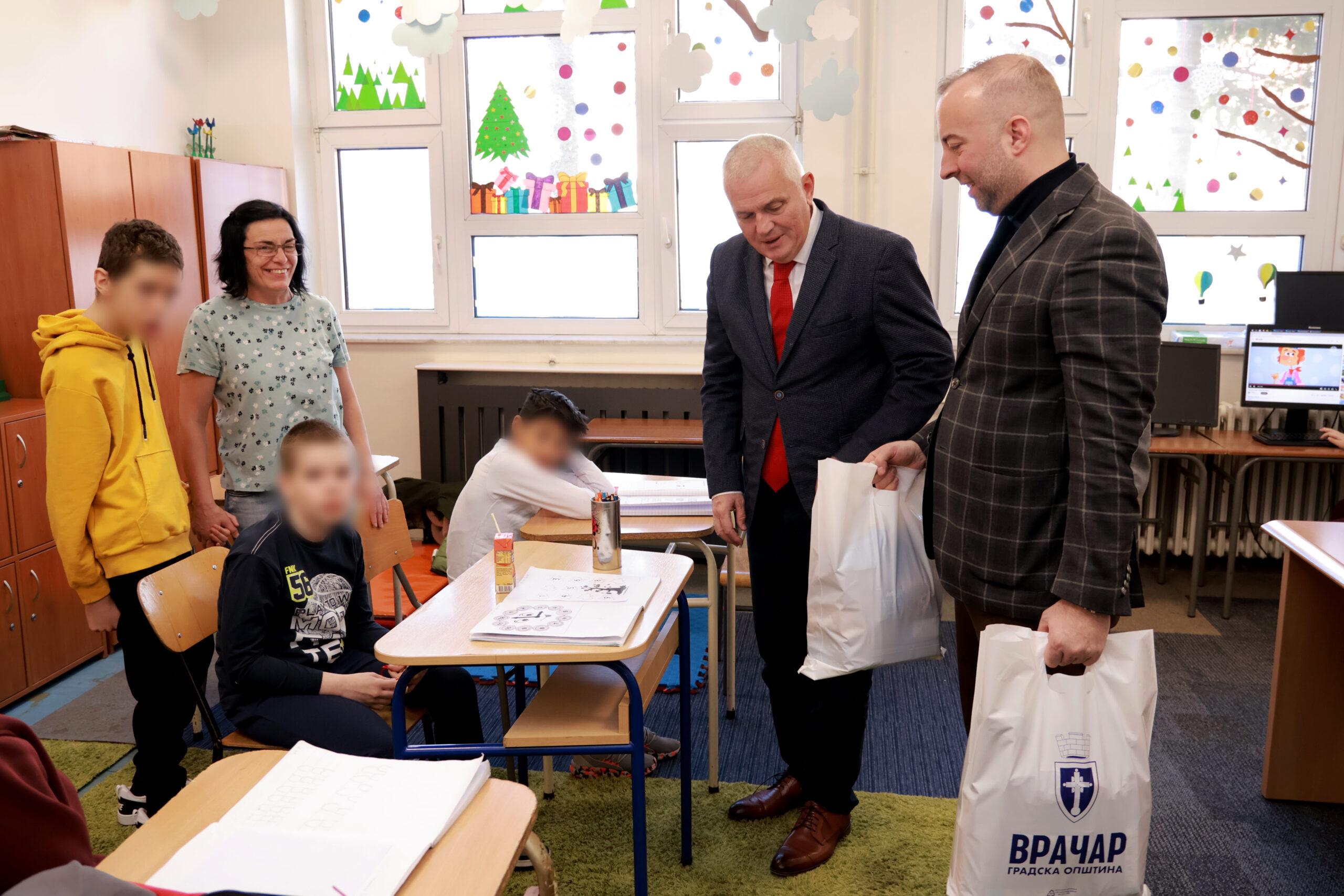 Predsednik Gradske opštine Vračar prof. dr Milan A. Nedeljković posetio je danas Osnovnu školu „N.H. Dušan Dugalić“, gde je razgovarao sa direktorom ove obrazovne ustanove i upoznao se sa uslovima rada, kao i svakodnevnim izazovima i uspesima učenika i zaposlenih. Tokom posete, predsednik Opštine uručio je učenicima ukupno 102 slatka poklon paketa, kao dar Gradske opštine Vračar. Ovaj gest pažnje izmamio je osmehe na licima đaka i predstavlja još jednu potvrdu da lokalna samouprava brine o vračarskim osnovcima.
