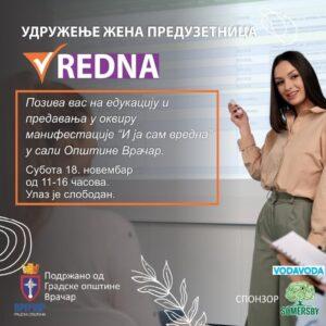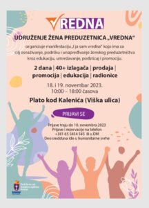 Број жена предузетница из године у годину све је већи. Градска општина Врачар у циљу оснаживања и промоције женског предузетништва, у сарадњи са Удружењем жена предузетница „Вредна“ у суботу и недељу, 18. и 19. новембра 2023. године реализује манифестацију „И ја сам вредна“, која се спроводи кроз два програма.