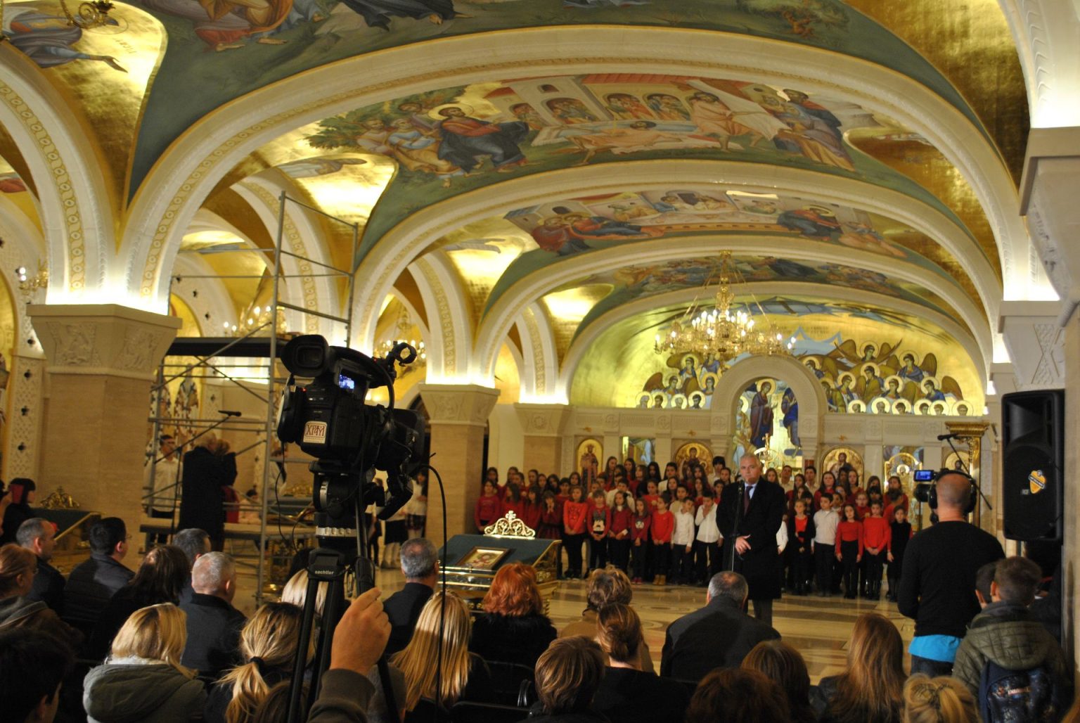 Свечаност је почела наступом школског хора који је извео Химну „Боже правде“, а потом и школску Химну Светом Сави и „Тамо далеко“, а глумци, рецитатори и најмлађи ученици извели су пригодан програм и захвалили директору ТВ Храм и старешинству Храма Светог Саве што су омогућили да се школска приредба одржи у крипти Храма