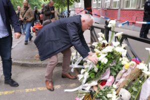 Председник Градске општине Врачар академик проф. др Милан А. Недељковић, председник Скупштине општине Врачар академик проф. др Јован Хаџи Ђокић и руководство Општине положили су венац, упалили свеће и минутом ћутања одали почаст страдалима у стравичној трагедији која се јуче десила у ООШ „Владислав Рибникар“.