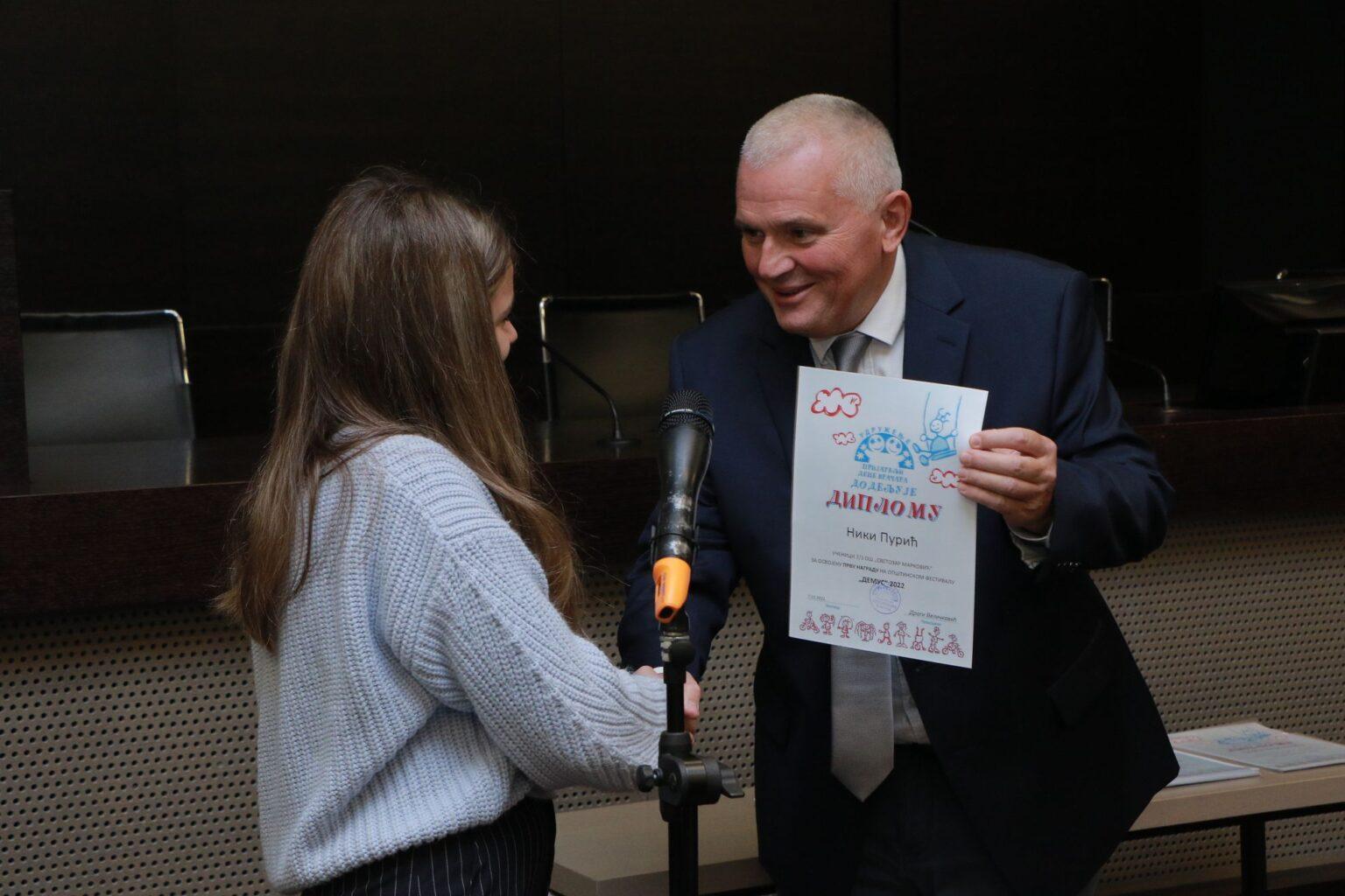 „Ove nedelje smo posvećeni vama deco. U okviru obeležavanja ‘Dečje nedelje’ organizovali smo izložbe, susrete, radionice. Deca su uvek u fokusu rada Gradske opštine Vračar. Mi nagrađujemo svaki vaš uspeh i stvaramo bolje uslove za vaše odrastanje i školovanje. Danas smo se okupili kako biste sa nama podelili svoje uspehe i talente, ali i ukazali na svoje želje i interesovanja“, izjavio je prvi čovek Gradske opštine Vračar. Svečanosti su prisustvovali i član Veća zadužen za obrazovanje Dragi Lukić, pomoćnik i šef Kabineta predsednika Kosta Malović i Nikola Jelenković.