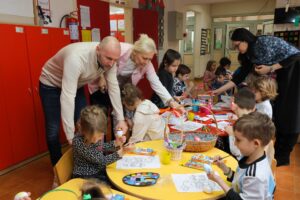 У врачарском вртићу „Мића и Аћим“, поводом најрадоснијег хришћанског празника Васкрса, који је деци посебно мио, 10. априла је одиграна представа за малишане „Ускршњи зека“, након чега је организована и креативна ликовна радионица фарбања ускршњих јаја, бојења цртежа и корпи. Деца су импресионирала присутне својим талентом, а пре свега исказаном интересовању и жељи да учествују у веселој манифестацији.
