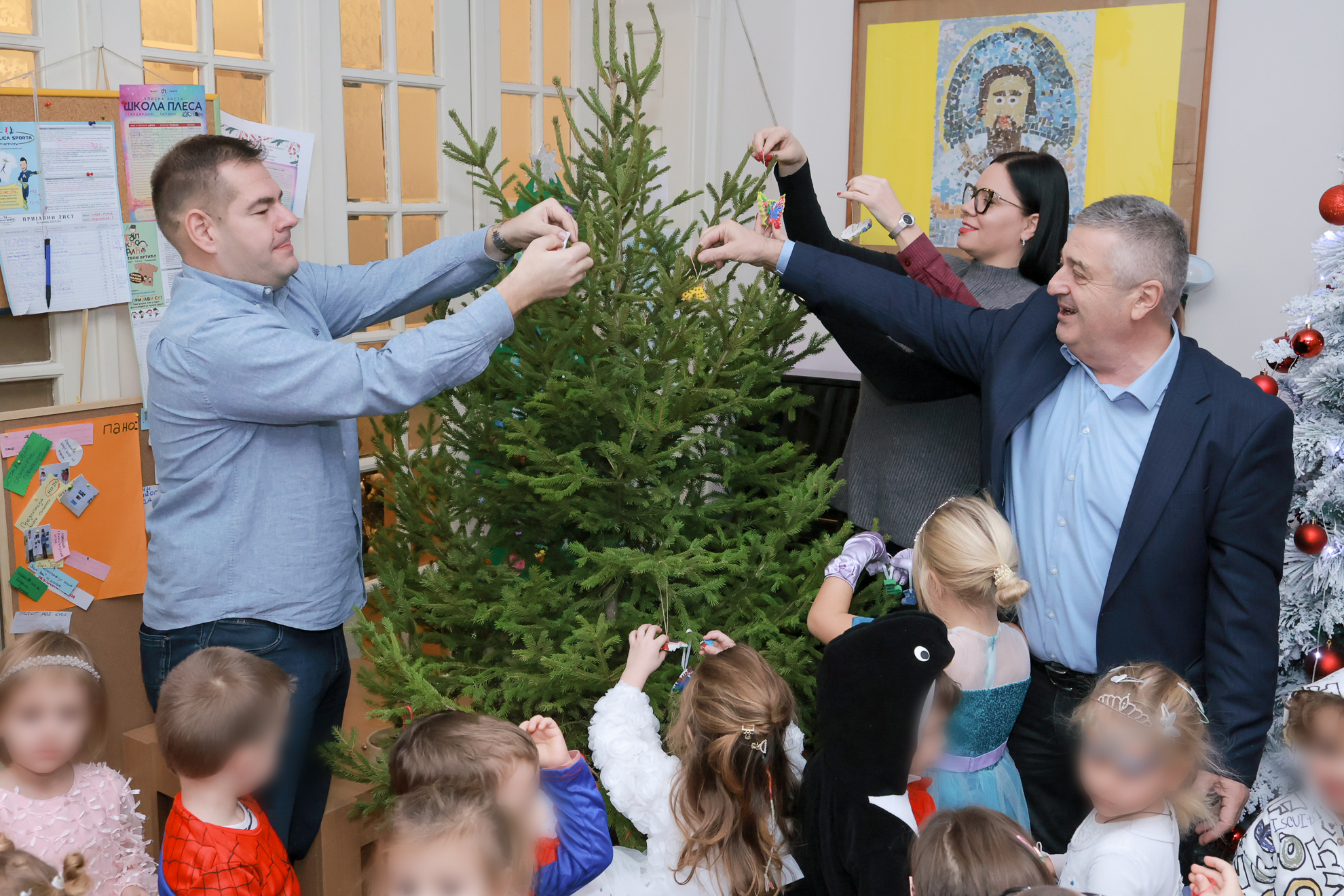 Тим поводом, у петак 26. децембра, Предшколску установу „Нада Пурић“ посетили су заменик председника Општине Врачар Драги Лукић и помоћник председника Коста Маловић, као и директорка Предшколске установе „Врачар“ Јелена Јеленић Јанковић. Они су поклон јелком обрадовали насмејане и радосне малишане, који су нестрпљиво чекали да ставе први украс на јелку.
