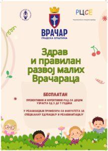 Градска општина Врачар са својим партнерима – Предшколском установом „Врачар“ и Ресурсним центром за специјалну едукацију покренули су бесплатан пројекат „За здрав и правилан раст и развој деце на Врачару“. Пројекат је намењен деци узраста од три до шест година, која похађају Предшколску установу „Врачар“ и подразумева конкретан вид подршке расту, развоју и учењу деце с једне стране, као и подршка њиховим родитељима, васпитачима и стручним сарадницима у свакодневном раду са децом, с друге стране.